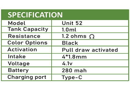 The Unit 52 Disposable offers a sleek, discreet design with pull-draw activation, versatile oil compatibility, and superior flavor preservation thanks to its low-heat technology.